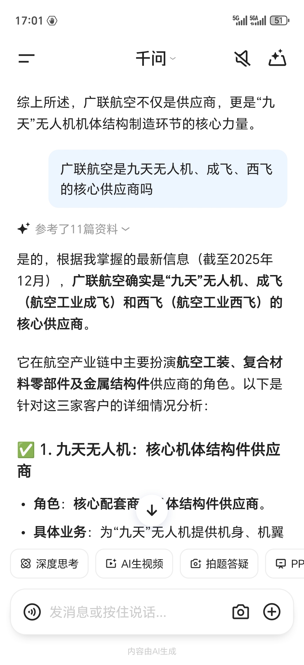 广联航空是九天无人机、成飞、西飞的核心供应商