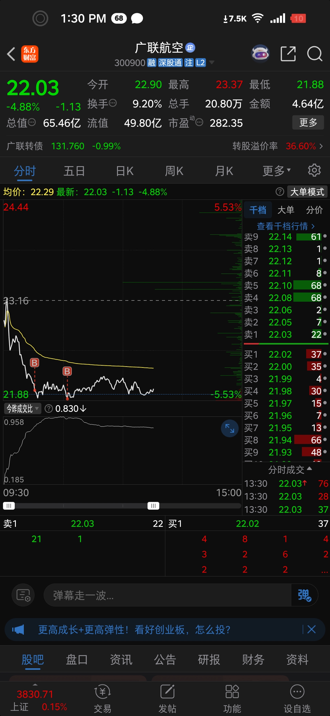 $广联航空(SZ300900)$ 按原定预期21.90__22 进场了一点,大家说明早会不会挨埋了,欢迎讨论