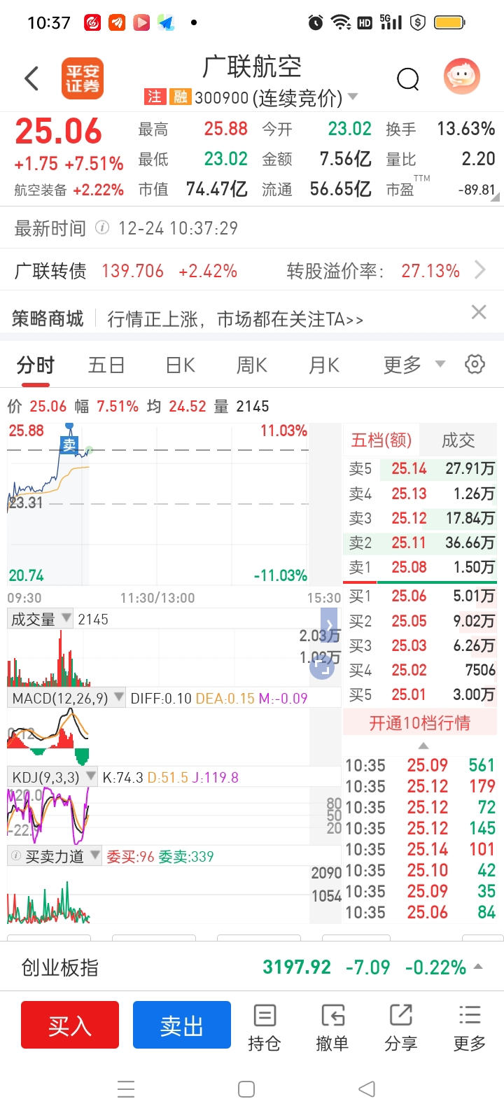 $广联航空(SZ300900)$ 25.81元清仓了,还算卖得及时,赚了546元,等跌下来再接回
