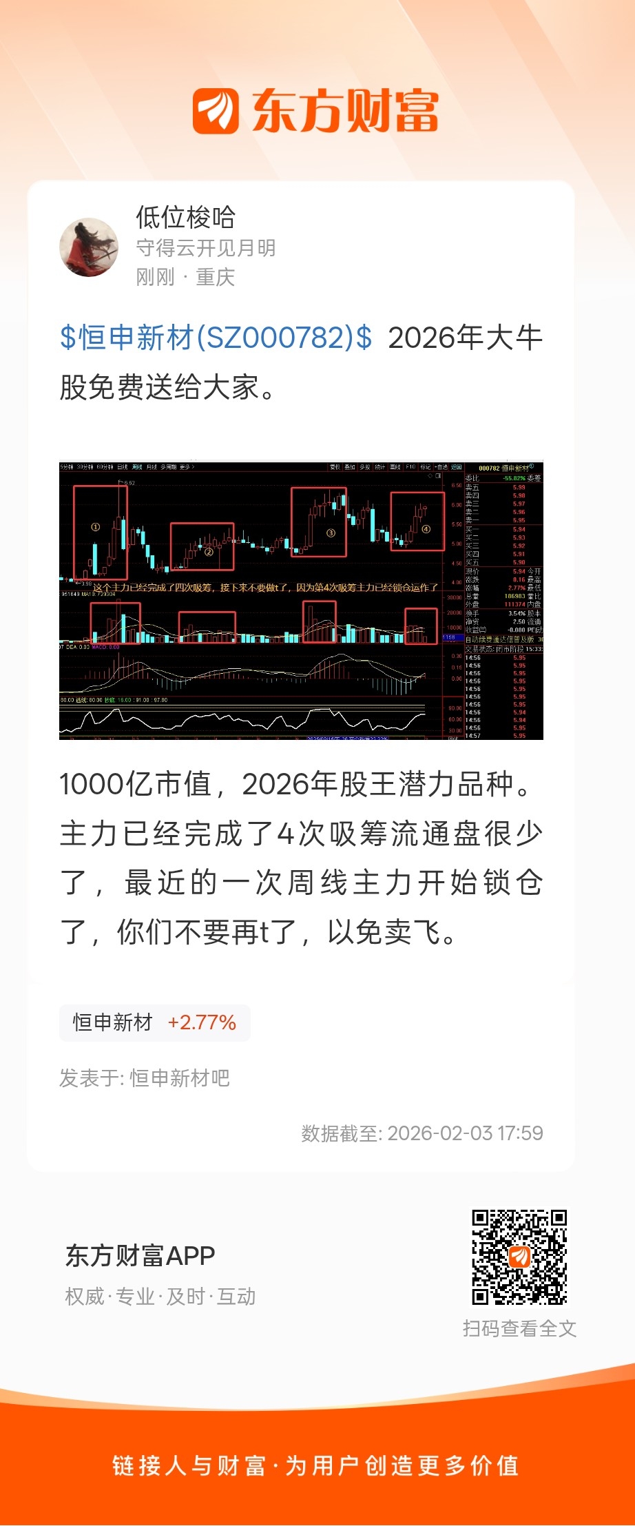 温馨提示: 1.根据《证券法》规定,禁止编造、传播虚假信息或者误导性信息,扰乱证券市场;2.用户在本社区发表的所有资料、言论等仅代表个人观点,与本网站立场无关,不对您构成任何投资建议。用户应基于自己的独立判断,自行决定证券投资并承担相应风险。《东方财富社区管理规定》