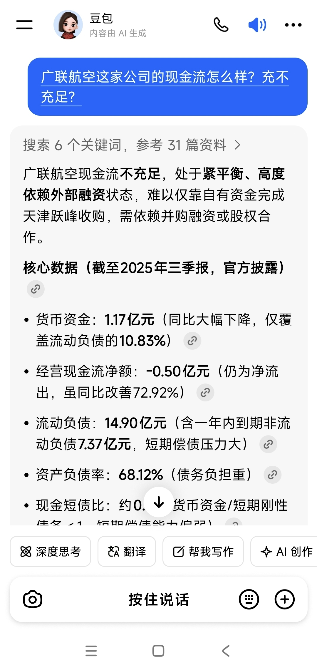 $广联航空(SZ300900)$ 你们数学老师是体育老师教的么?公司流动资金才1亿多点,收购意向金要交付8000万元,拿什么去收购呢?
