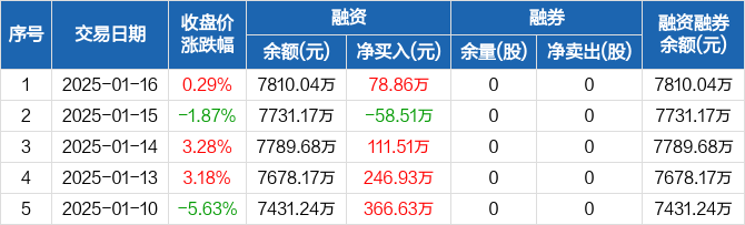 中胤时尚:融资净买入78.86万元,融资余额7810.04万元(01-16)