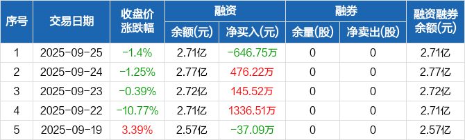 中胤时尚:融资净偿还646.75万元,融资余额2.71亿元(09-25)