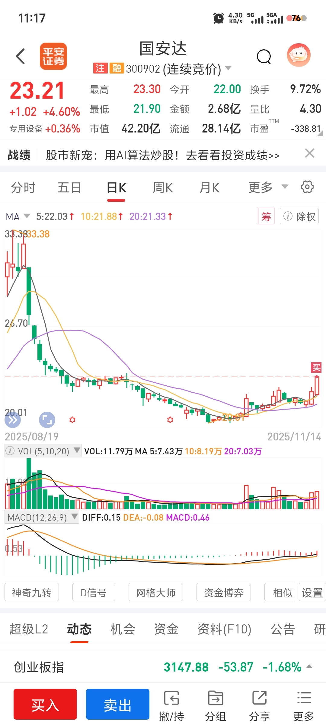 上午卖出买入国安达,鸿智科技还是止损1.5%走的,真恶心,希望国安达这次别看再歪