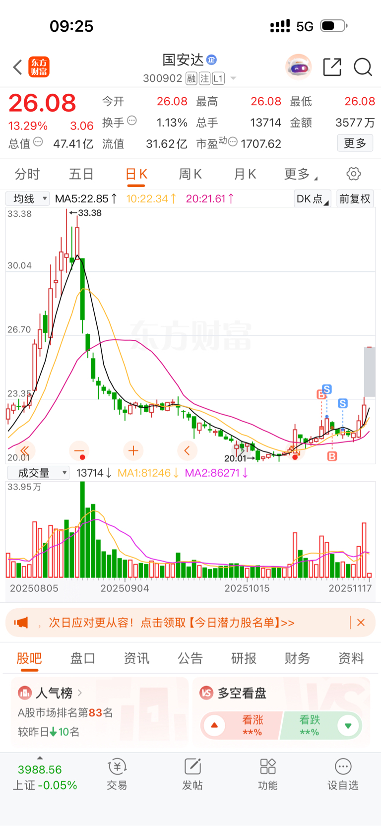 $国安达(SZ300902)$ 卖早了 肉吃不上了