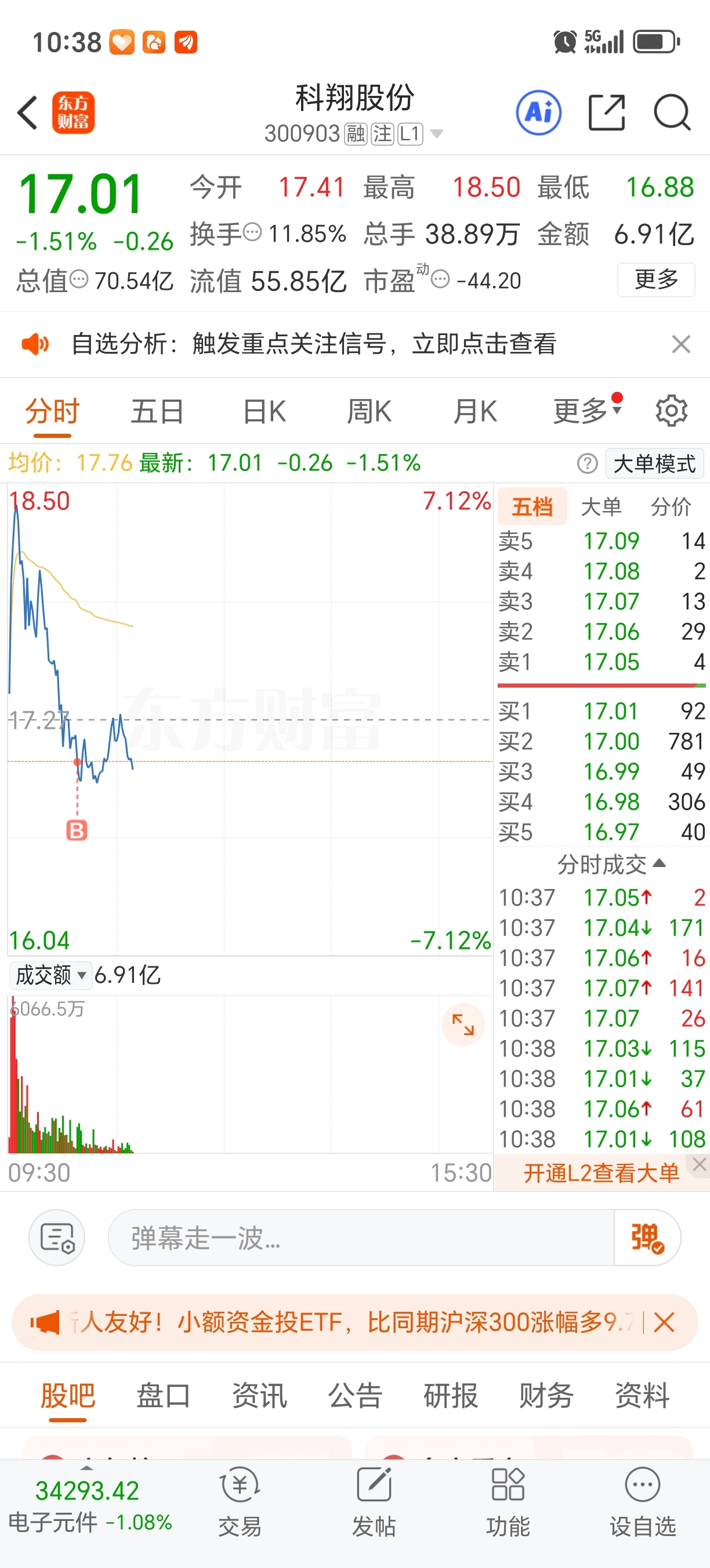 今天没有亏在众智科技上,亏在了新特电气和科翔股份上,反正都是亏,亏哪里不都是一样