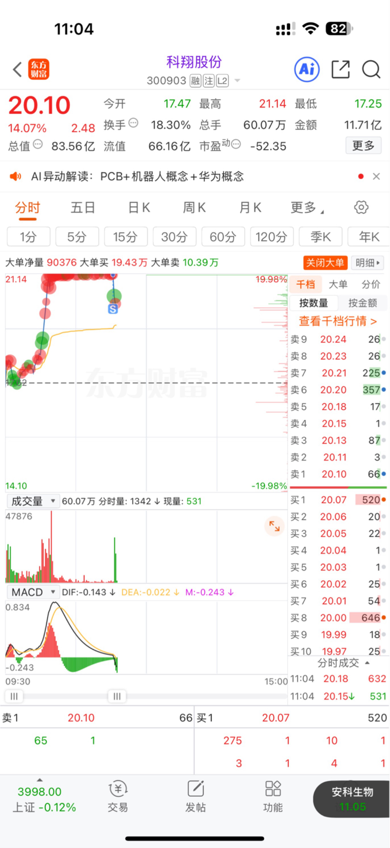 $科翔股份(SZ300903)$ 这是巧合吗?我一卖就开板?哈哈!