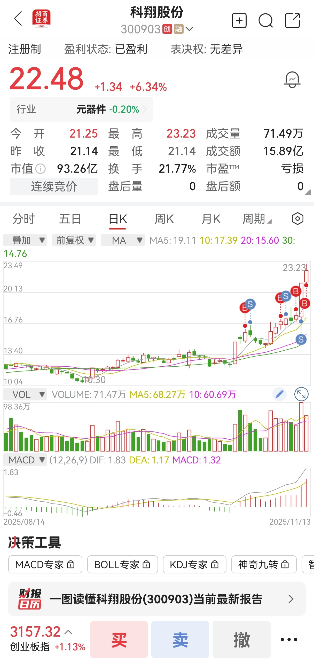 $科翔股份(SZ300903)$ 昨天20.8卖 今天22.5又追进来,不会出事吧