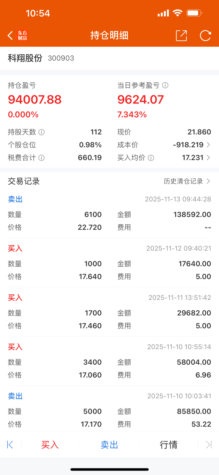感谢科翔让我成功翻倍!今天真的清仓了,第一只让我翻倍的股票发帖做个纪念,感谢
