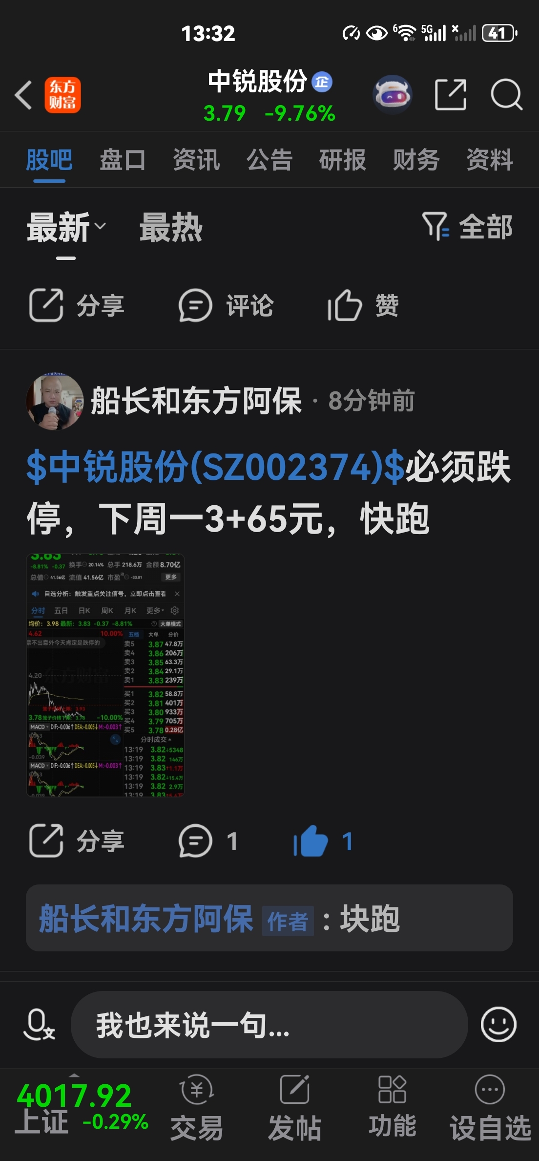 【中锐股份】3.79全仓买进你买了么?该股低价股,翻倍必须