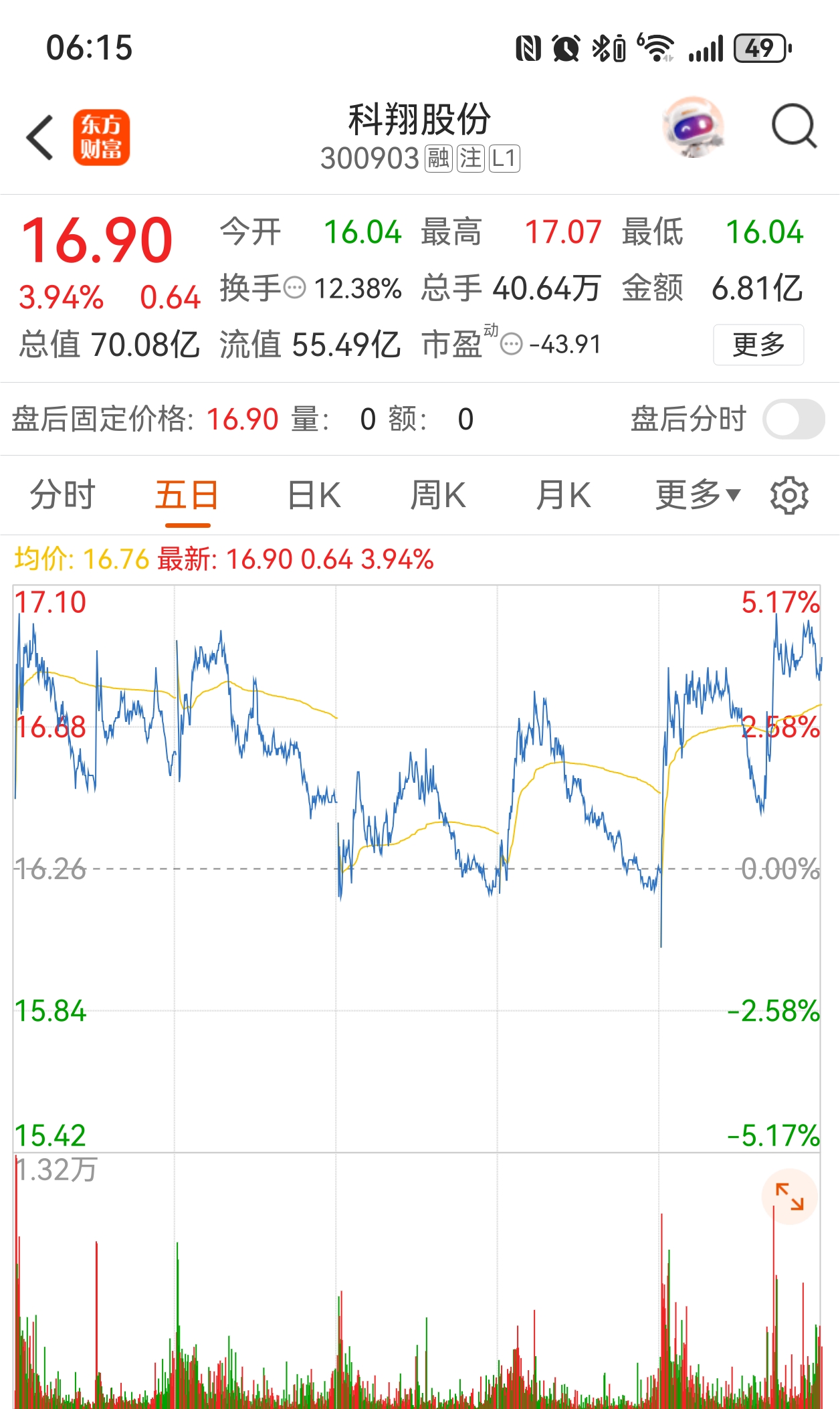 $科翔股份(SZ300903)$ 从哪里来,回到哪里去。一周瞎折腾。