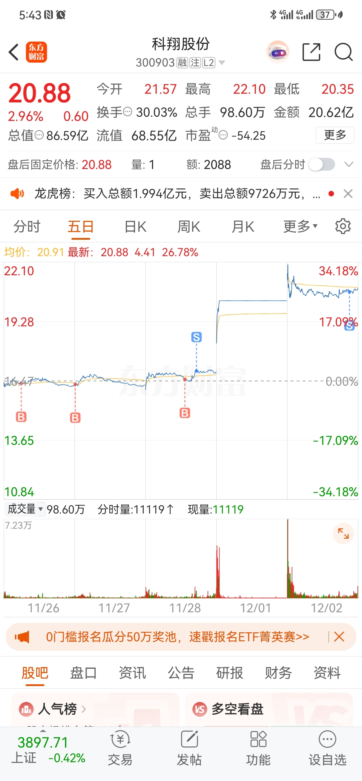 $科翔股份(SZ300903)$ 江湖再见,本来预计科翔今天冲到15%左右立场,结果市场今天弱势,导致科翔不及预期,尾盘2%左右立场,预计回调10%左右可以再次进场,PCB没有问题,科翔没有问题,获利资金消耗一下继续起飞