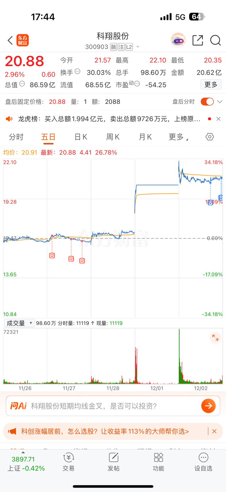 $科翔股份(SZ300903)$ 盘后利好,800G在量产。明天筹码又得抢回来?我