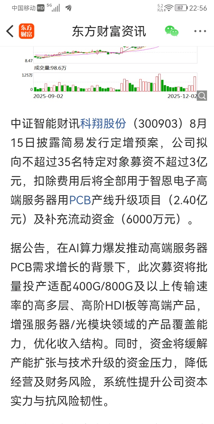 如果资讯属实科翔的基本面确实焕然一新初具大牛股象。散户知道都会疯踊而至而且会越跌越买。越反机构为定增而打压股价散户也会越跌买。不过资讯说会申请简化程序定增^,也许价格早以定好,可能会与惯用的定增等于股价下跌的背向而驰吧。机构,庄家,公司再密谋看菜下饭看着办吧反正我只买了二百股等着下跌补仓。