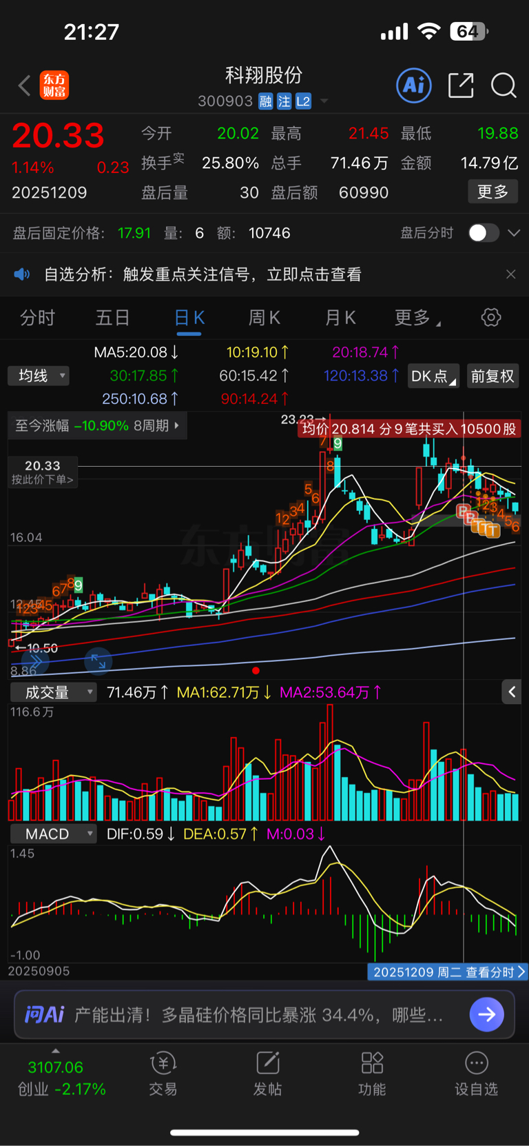 $科翔股份(SZ300903)$ 庄狗,躺平了!