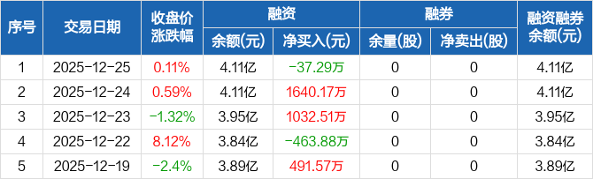 科翔股份:融资净偿还37.29万元,融资余额4.11亿元(12-25)