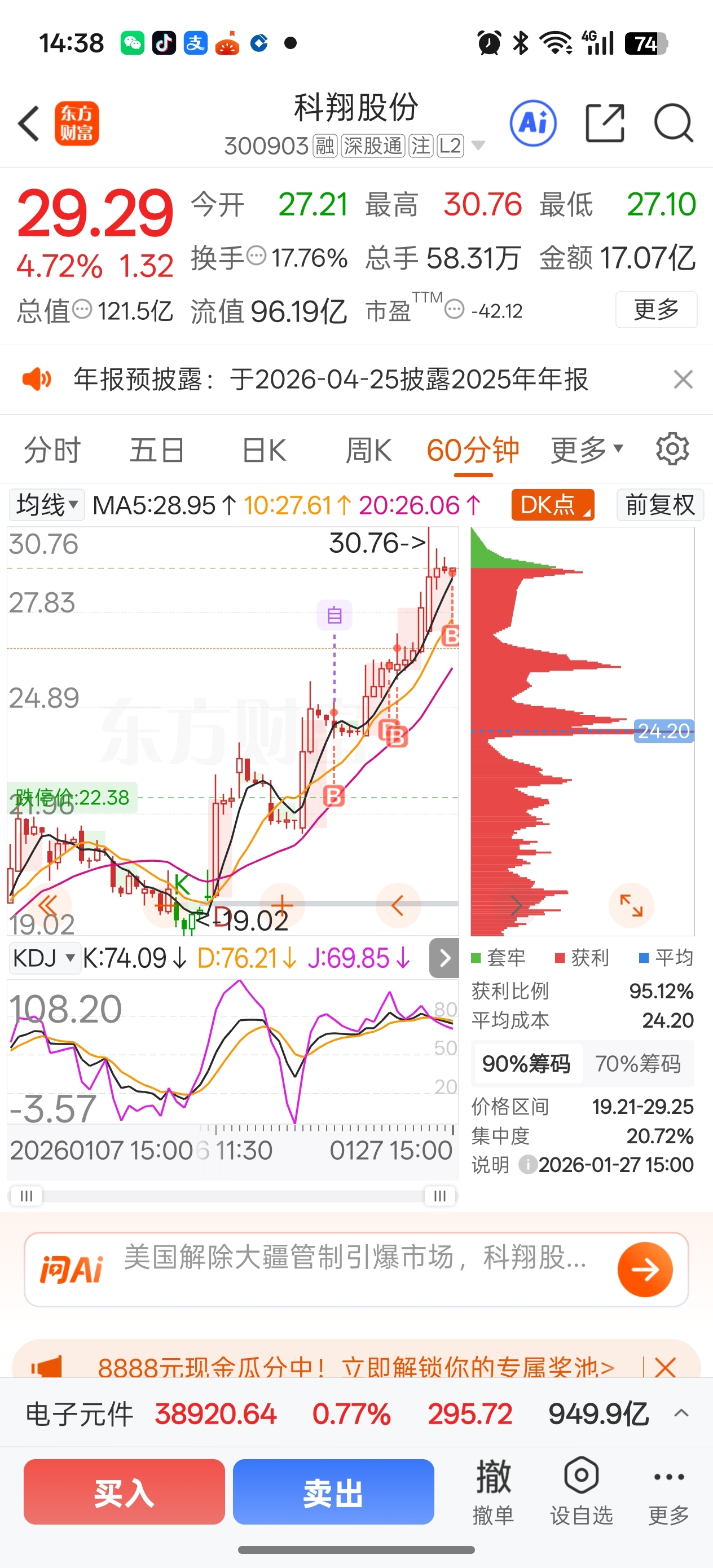$科翔股份(SZ300903)$ 重仓猛干浮赢加仓,频繁交易技术分析