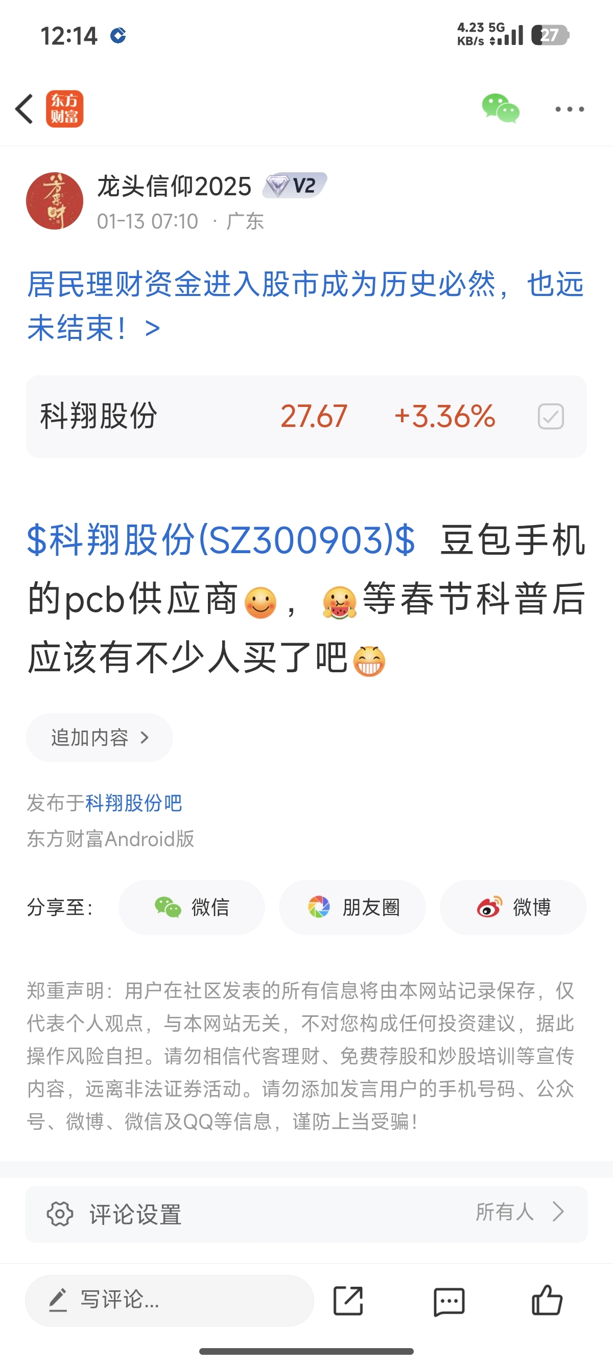 温馨提示: 1.根据《证券法》规定,禁止编造、传播虚假信息或者误导性信息,扰乱证券市场;2.用户在本社区发表的所有资料、言论等仅代表个人观点,与本网站立场无关,不对您构成任何投资建议。用户应基于自己的独立判断,自行决定证券投资并承担相应风险。《东方财富社区管理规定》