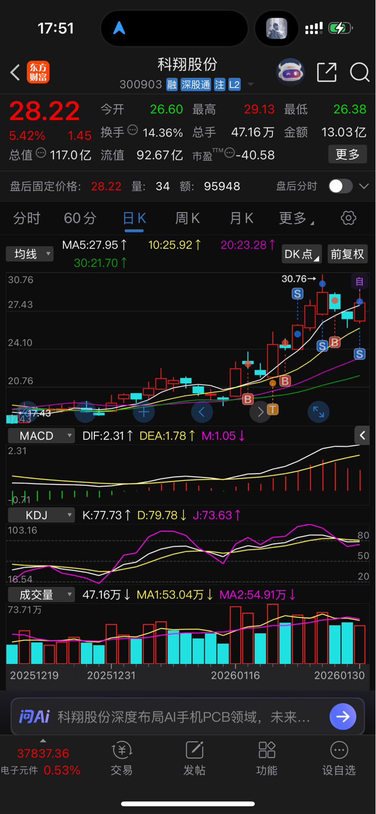 $科翔股份(SZ300903)$ 小仓位赚30%,祝留下的发财,应该还能涨。