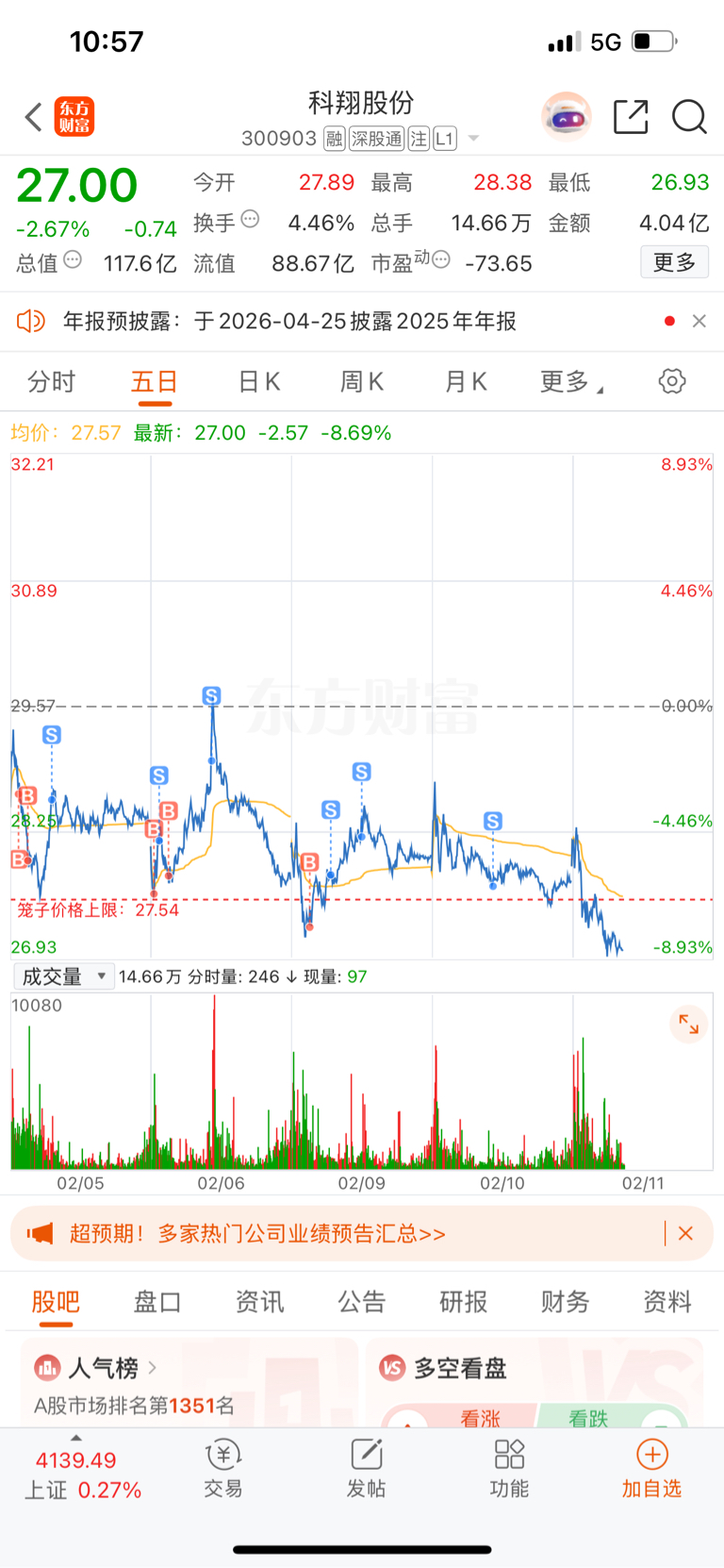 $科翔股份(SZ300903)$ 不要怀疑我的运气,明早在看上不上车