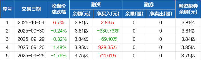 宝丽迪:融资净买入2.83万元,融资余额3.81亿元(10-09)