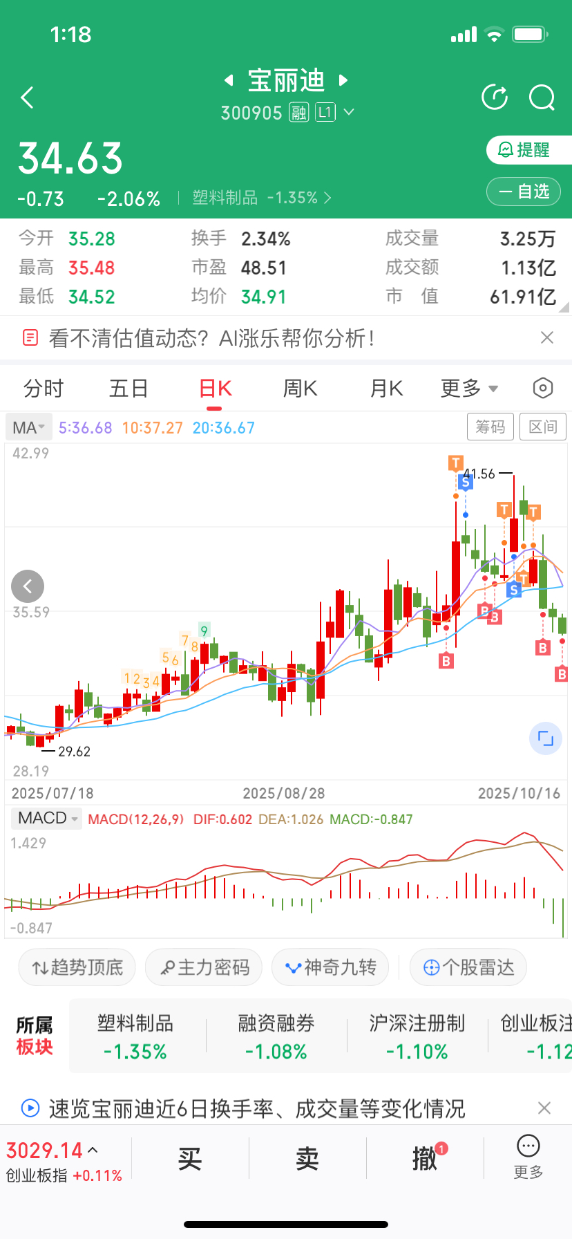 大盘看到3800,宝丽迪我连续加仓,多亏点,没啥问题
