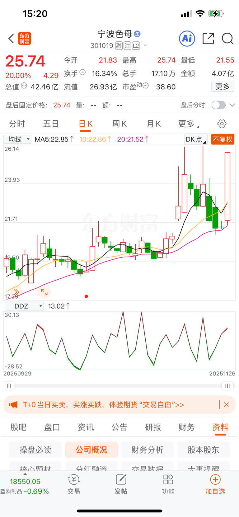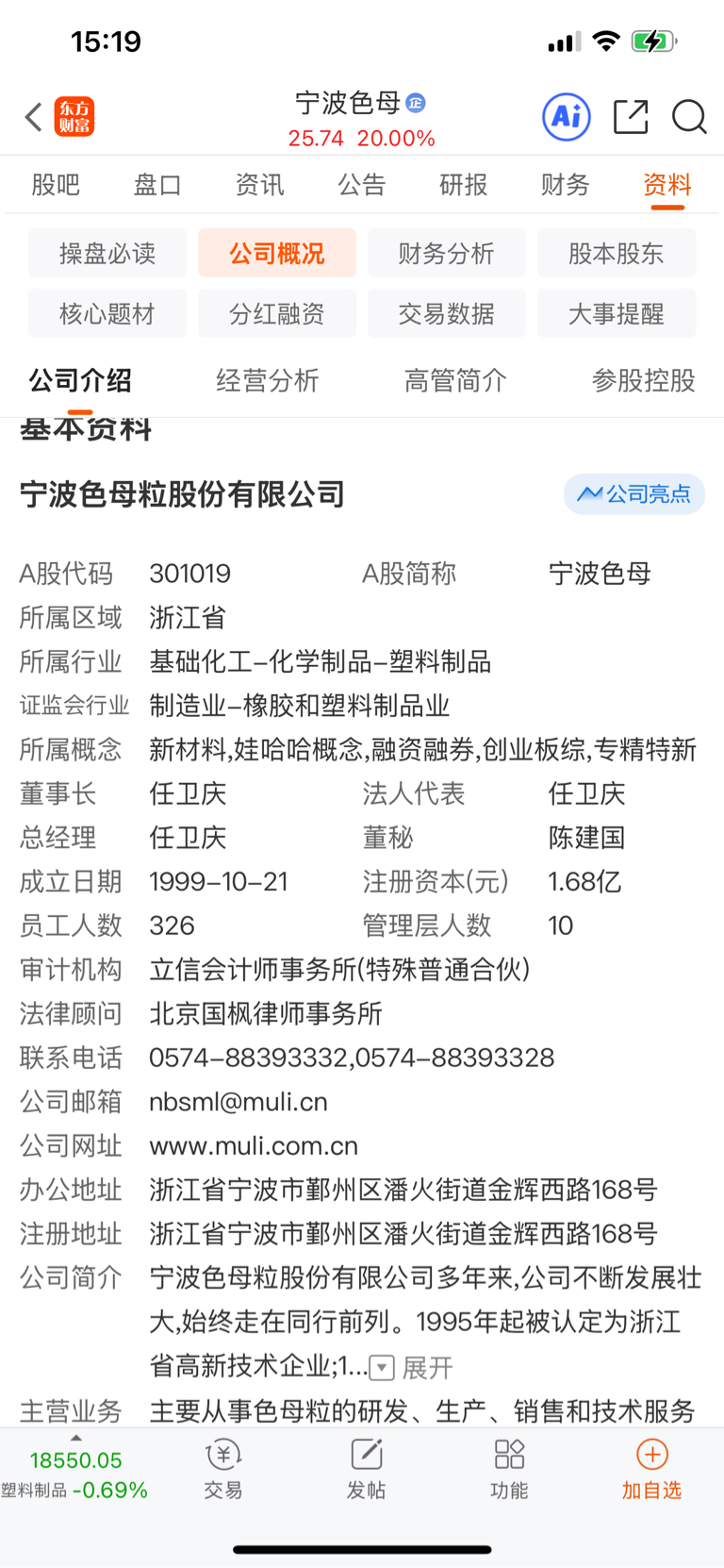 $宝丽迪(SZ300905)$ 同样做色母粒的一个20 cm,一个还在半山腰下