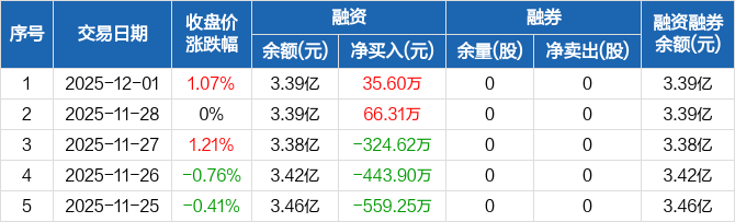宝丽迪:融资净买入35.6万元,融资余额3.39亿元(12-01)