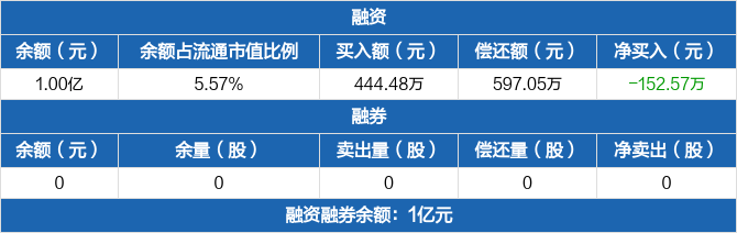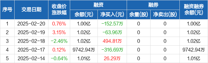 日月明:融资净偿还152.57万元,融资余额1亿元(02-20)