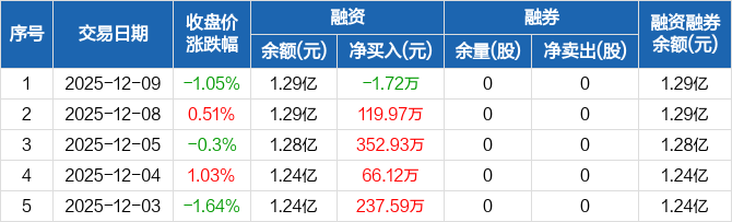 日月明:融资净偿还1.72万元,融资余额1.29亿元(12-09)
