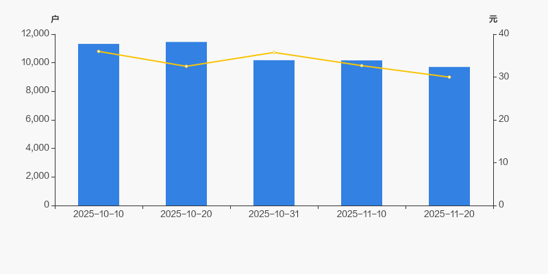 截至2025年11月20日,公司最新总股本为9600万股,且均为流通股。户均持有流通股数量由上期的9441股上升至9888股,户均流通市值29.65万元。