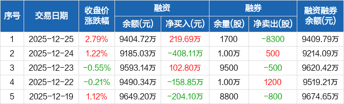 康平科技:融资净买入219.69万元,融资余额9404.72万元(12-25)