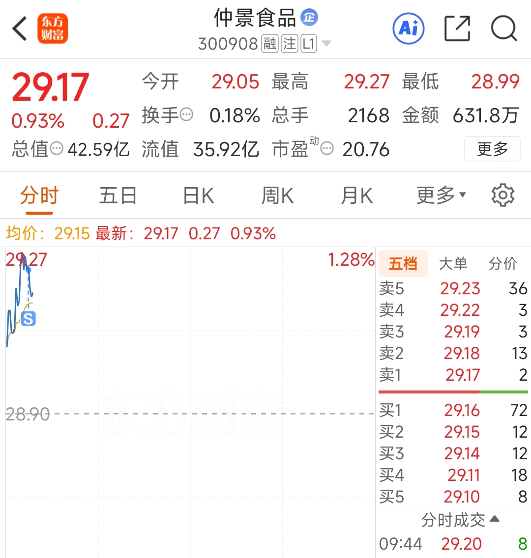 $仲景食品(SZ300908)$ 你可以跌回到29让我接回了