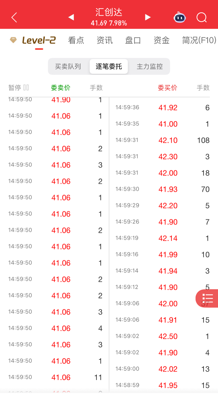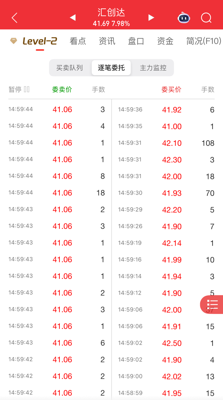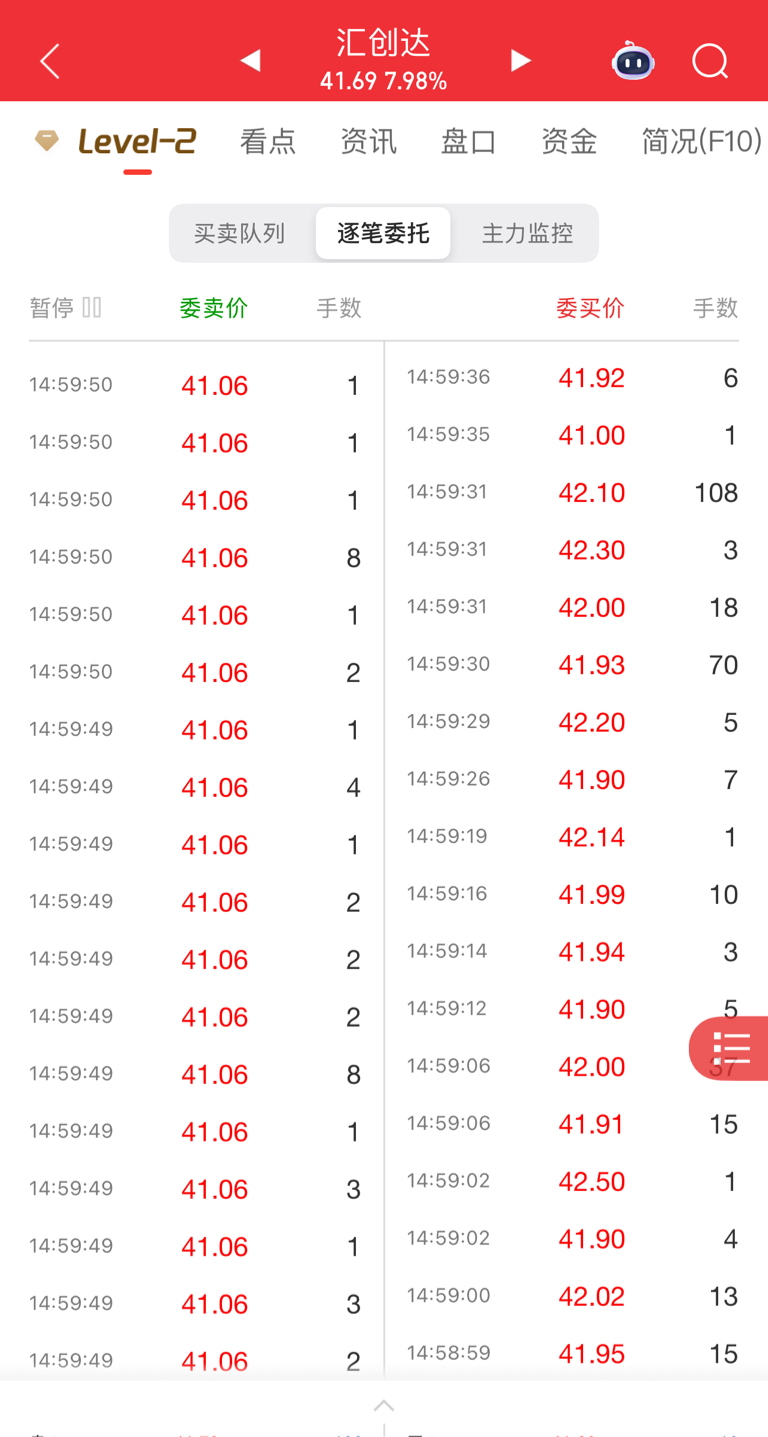 尾盘集合竞价,41.06这个价格最后一分钟内量化疯狂抛单出货砸盘,明天绝对低开低走,让我们拭目以待,哈哈
