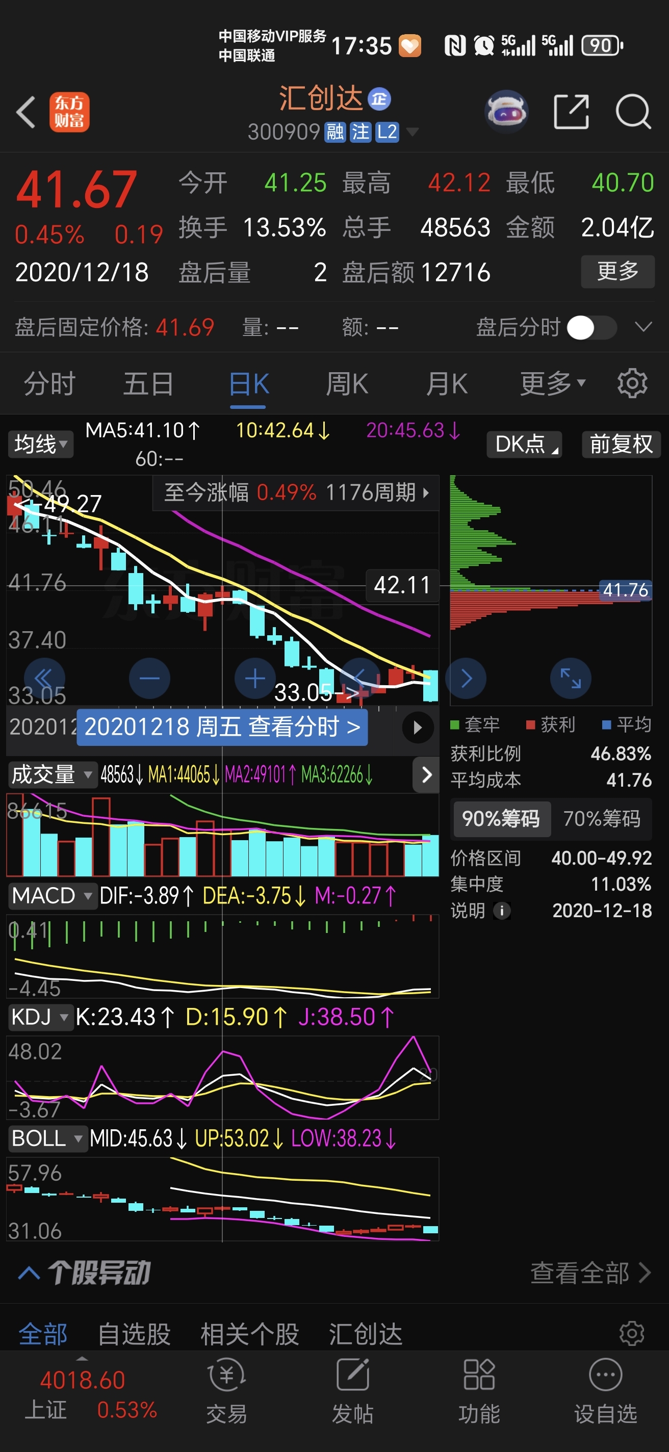 $汇创达(SZ300909)$ 4141下午突破,翻到2020年了,没啥压力位,涨不动见阴出,也不知道公司是干啥的,随便吧