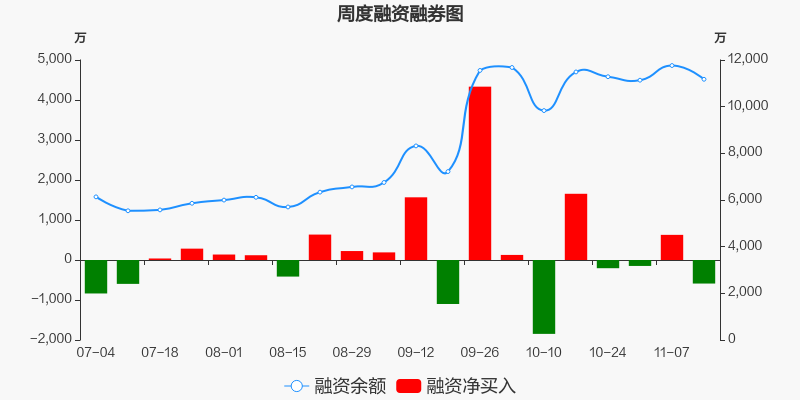 瑞丰新材本周(2025/11/10-2025/11/14)累计涨幅达4.54%,截至11月14日最新股价报收59.90元。从增量上来看,11月10日至11月13日融资买入交易规模7489.22万元,融资偿还规模8077.83万元,期内融资净偿还588.6万元。从存量上来看,截止11月16日,瑞丰新材融资融券余额1.14亿元,其中融资余额规模1.12亿元,融券余额规模199.75万元。