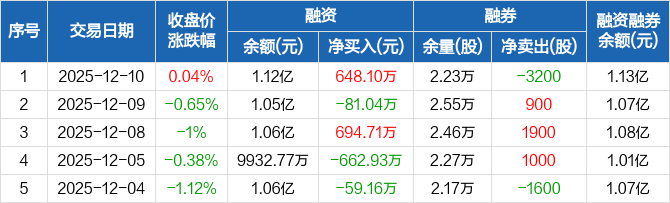瑞丰新材:融资净买入648.1万元,融资余额1.12亿元(12-10)