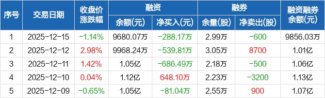 瑞丰新材:连续3日融资净偿还累计1514.46万元(12-15)