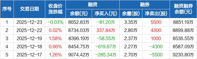 瑞丰新材:融资净偿还81.2万元,融资余额8652.83万元(12-23)