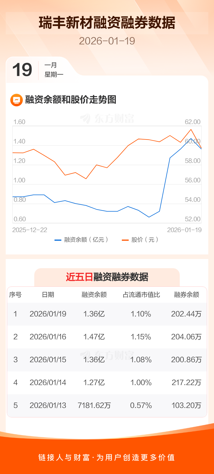 交易所最新数据显示,瑞丰新材于2026年1月19日获融资买入1980.05万元,融资偿还3047.77万元,当日融资净偿还1067.72万元。目前,该股融资余额1.36亿,占流通市值比例为1.10%。