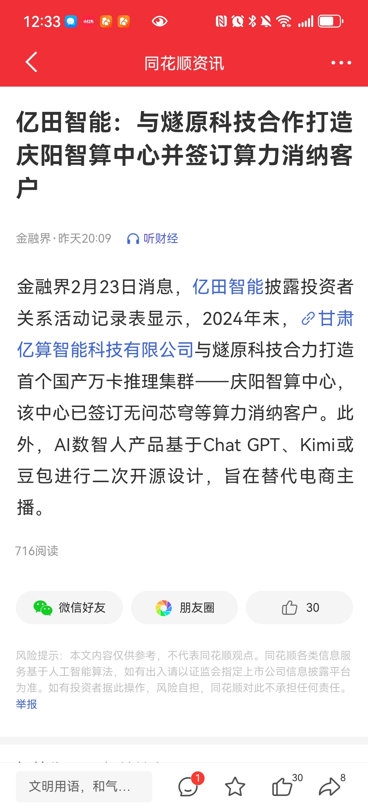 亿田智能:与燧原科技合作打造庆阳智算中心并签订算力消纳客户