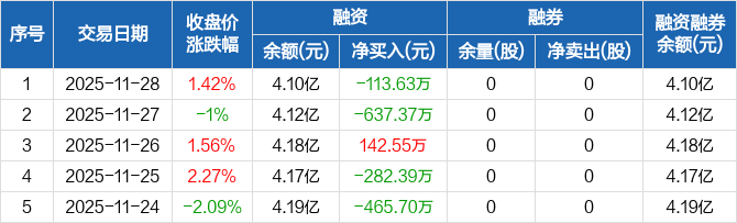 亿田智能:融资净偿还113.63万元,融资余额4.1亿元(11-28)