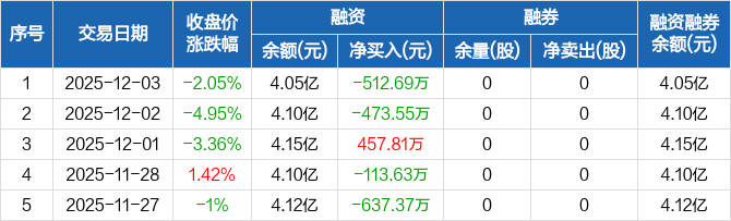 亿田智能:融资净偿还512.69万元,融资余额4.05亿元(12-03)