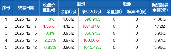 亿田智能:融资净偿还398.94万元,融资余额4.08亿元(12-18)