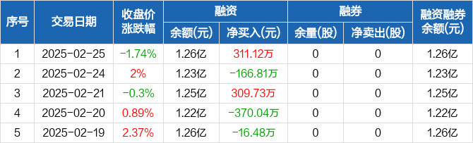 凯龙高科:融资余额1.26亿元,创历史新高(02-25)