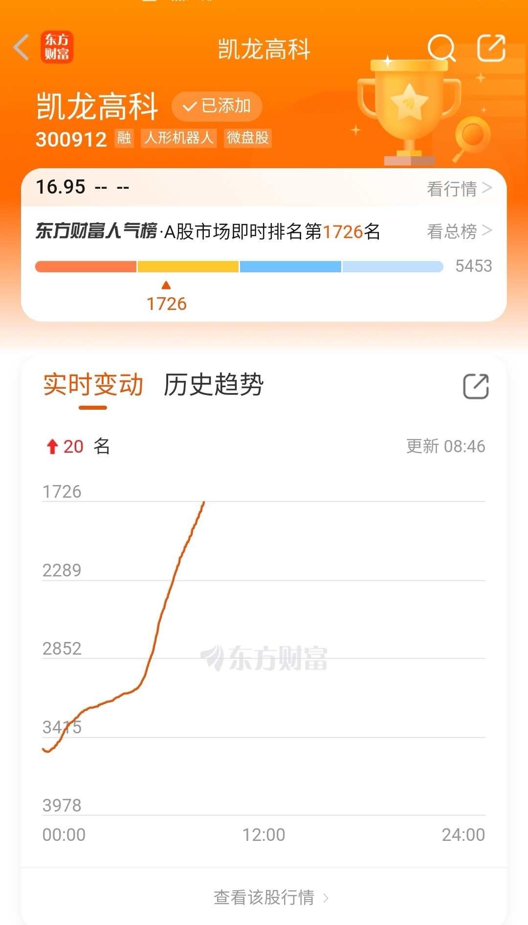 人气暴增2000多名,飙升榜第一名,证明都等着抄底。