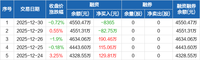 凯龙高科:融资净偿还8365元,融资余额4550.47万元(12-30)