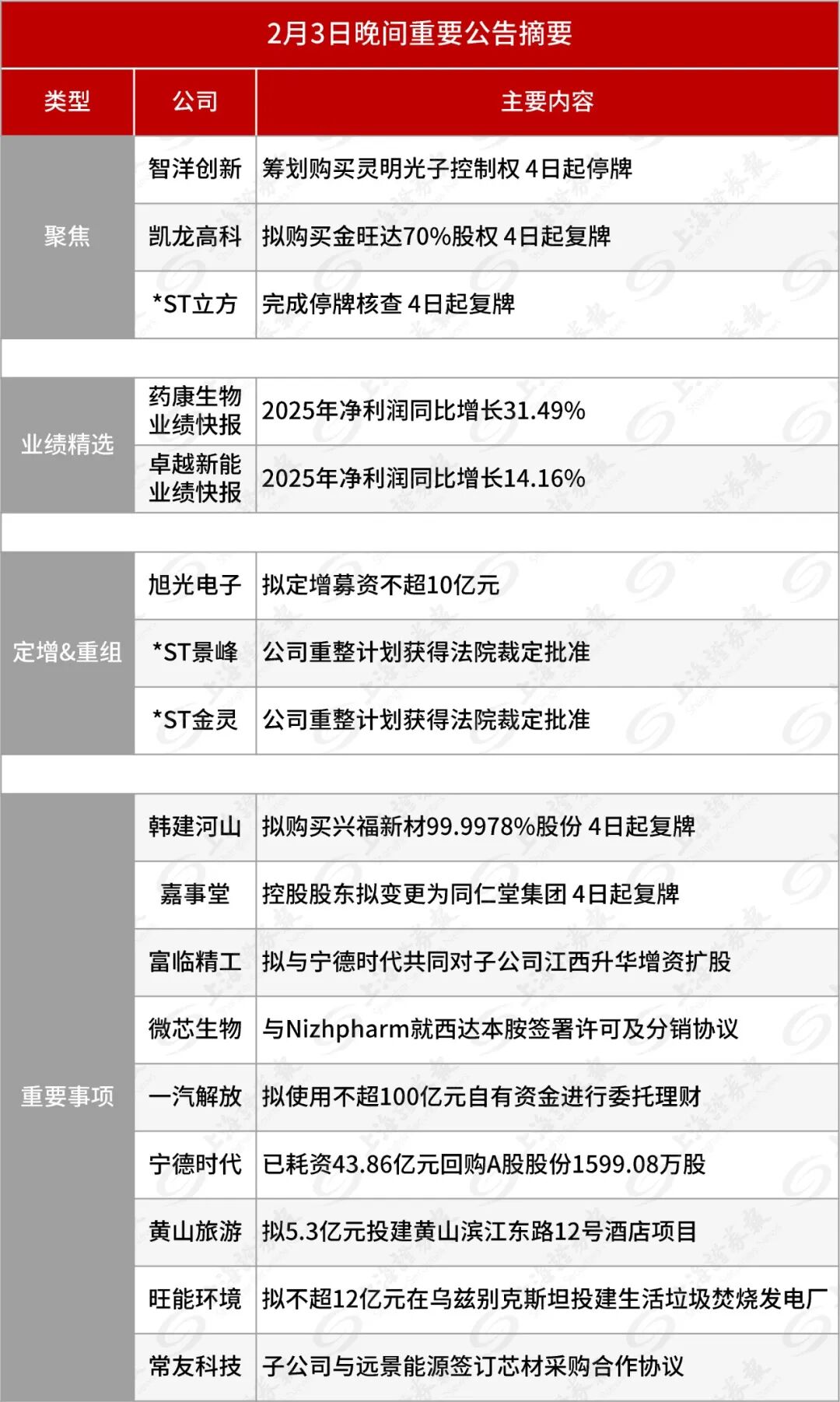 *ST景峰:2026年2月3日,公司收到常德中院送达的(2025)湘07破15号之一《民事裁定书》,常德中院裁定批准《湖南景峰医药股份有限公司重整计划》并终止公司重整程序。常德中院裁定批准公司重整计划后,公司将进入重整计划执行阶段。