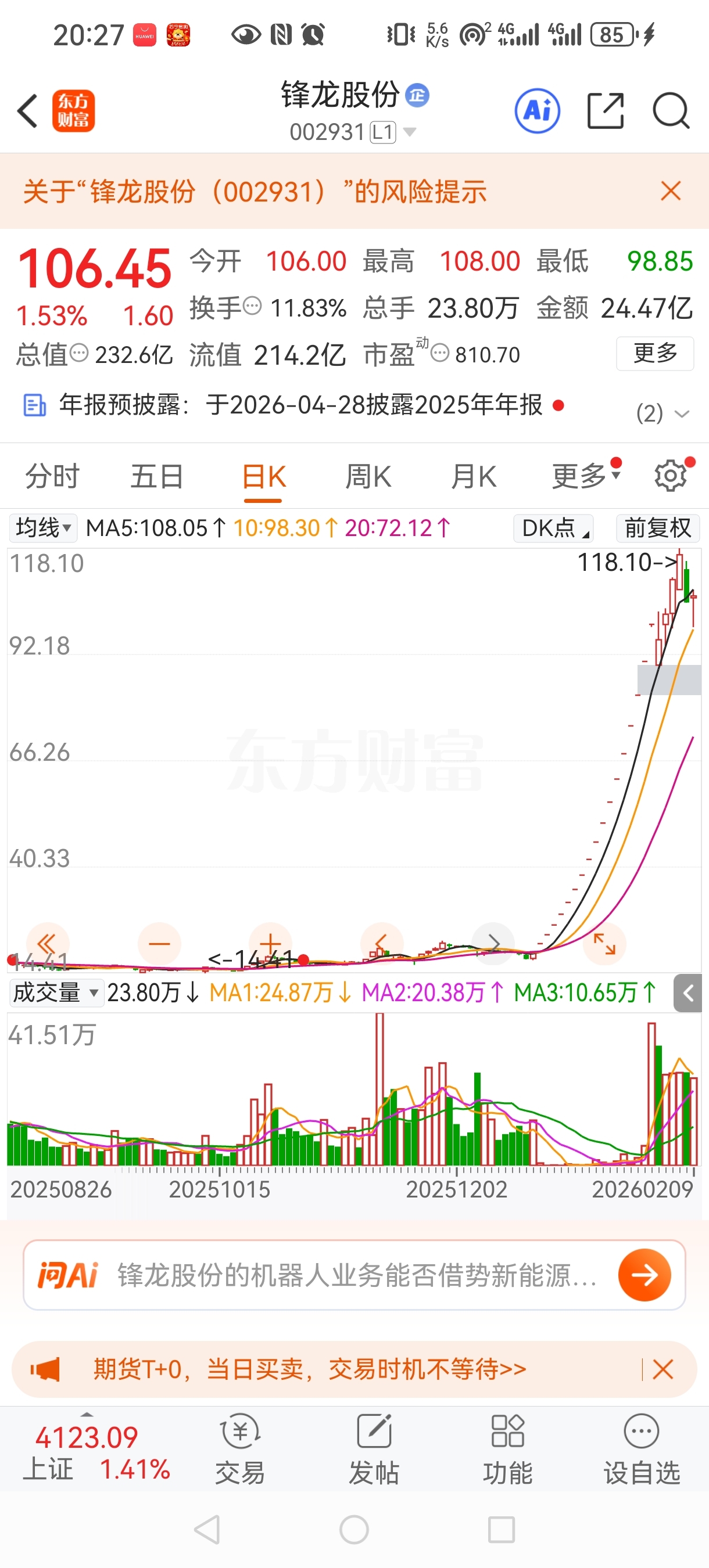 $凯龙高科(SZ300912)$ $锋龙股份(SZ002931)$ 淡定才几个板啊!看看锋龙