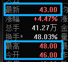 最高48.00,开盘46.00,收盘43.00,这老庄把盘控死了